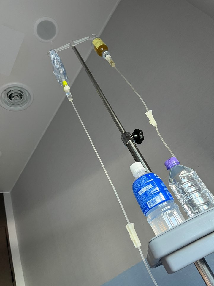 천자를 하고나서 알부민을 맞으면서 열심히 포카리를 마시고