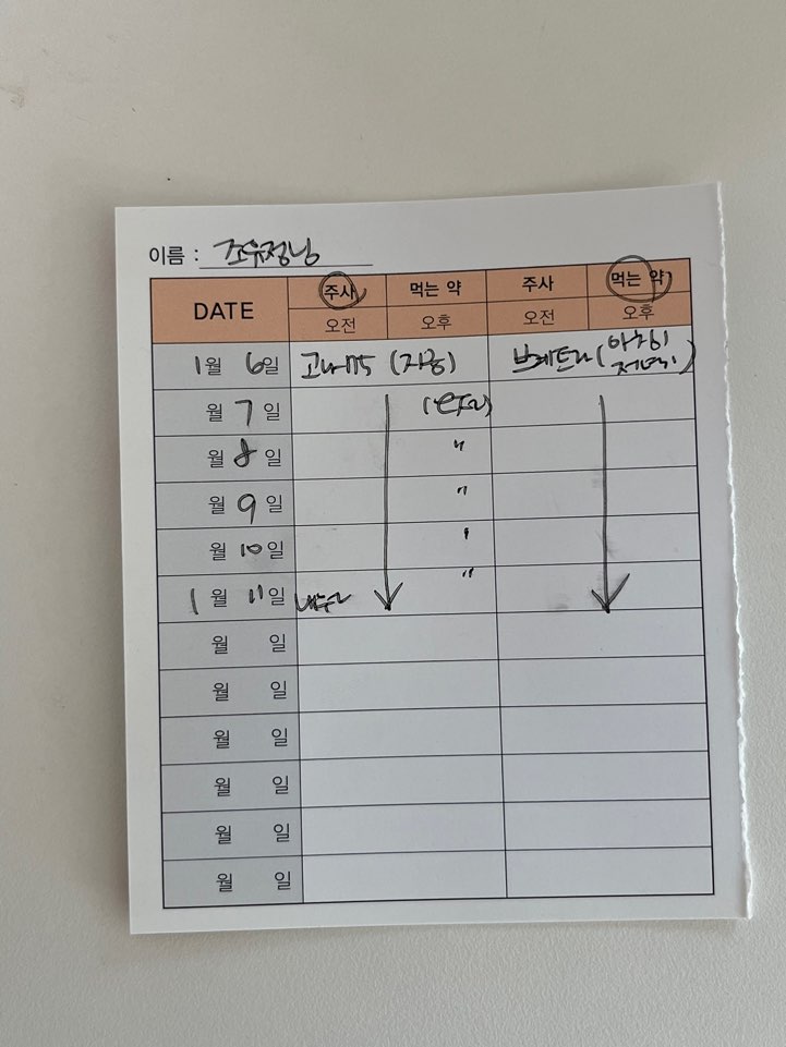 6일동안 열심히 약 먹고 주사 맞고